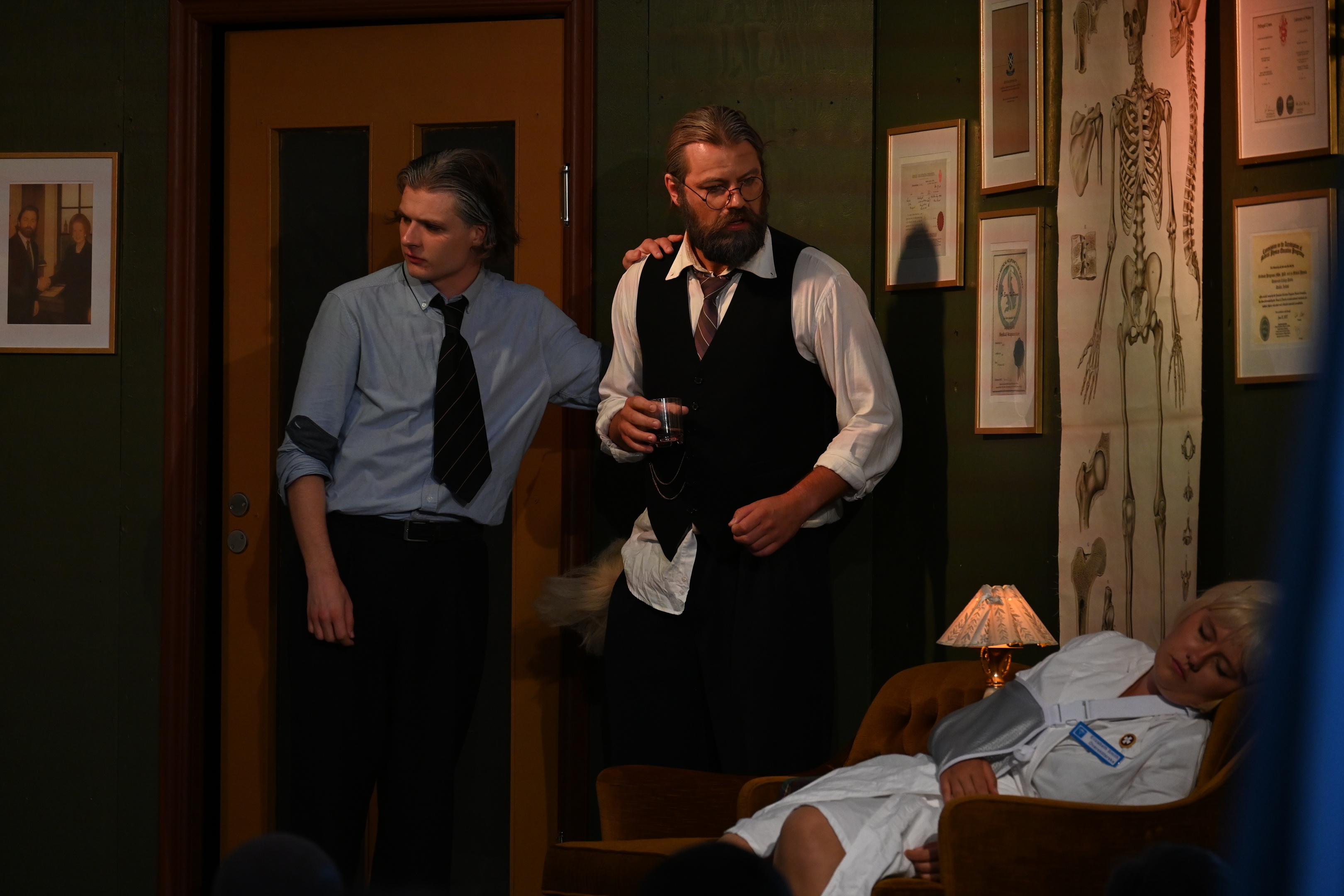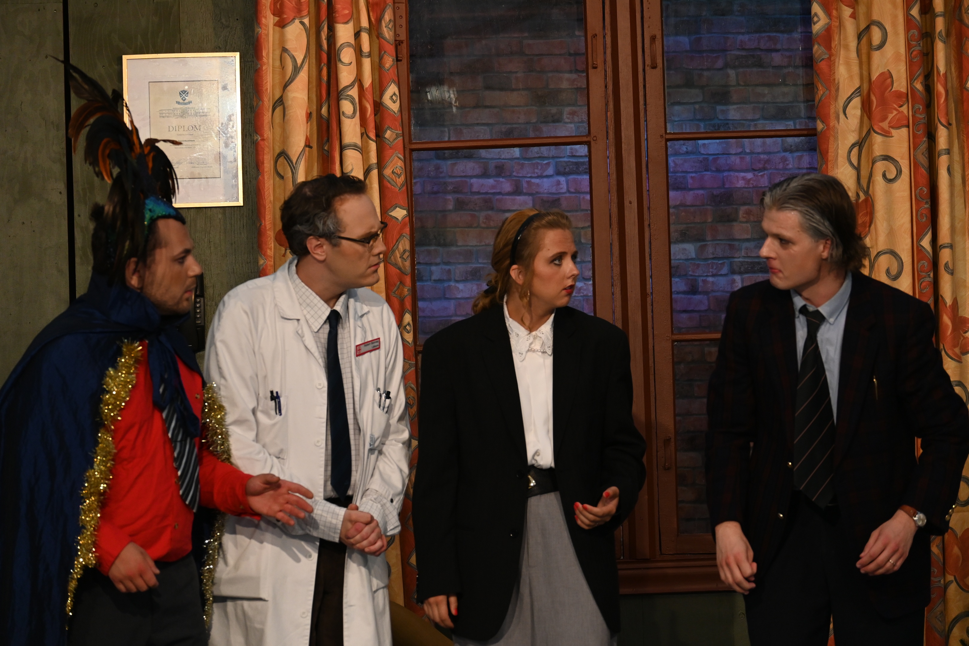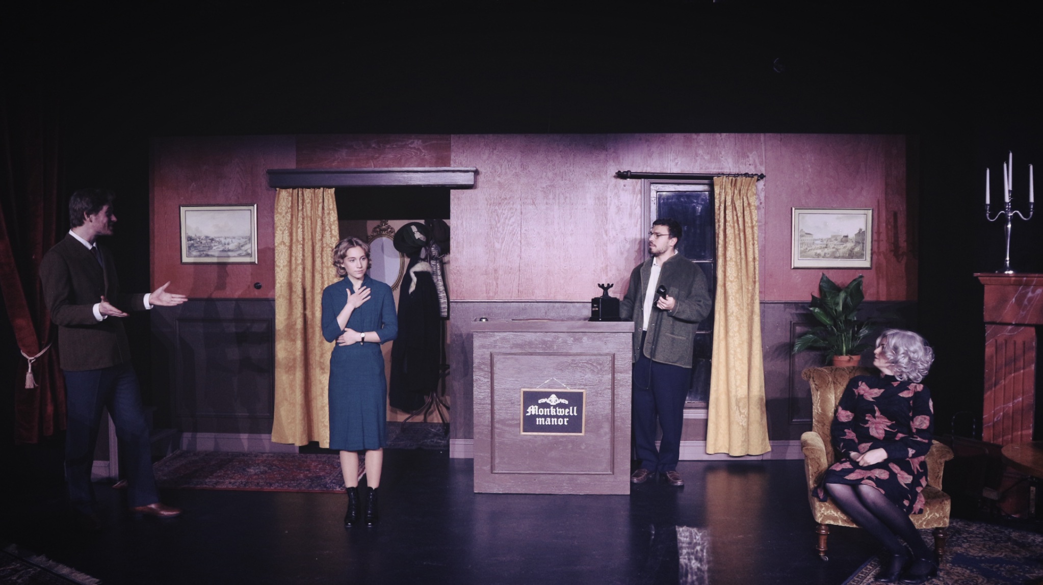 Vår uppsättning av Agatha Christies Råttfällan hade premiär på Skara Skolscen den 14 februari 2025.
